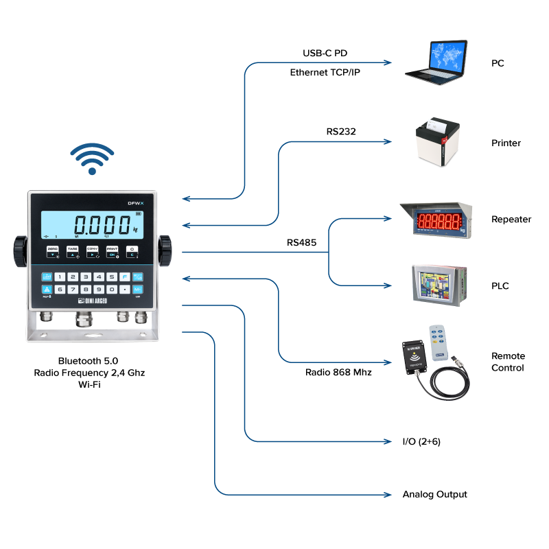 Die Kombination von mehreren Betriebsarten in Verbindung mit der Flexibilität der Programmierung machen den DFWX zum neuen Maßstab für konfigurierbare Gewichtsanzeigen