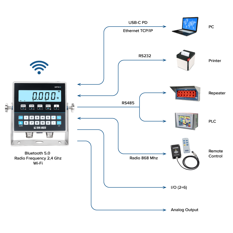 Die Kombination mehrerer Betriebsmodi in Verbindung mit der Flexibilität der Programmierung machen den DFWX zum neuen Maßstab für konfigurierbare Gewichtsanzeigen.