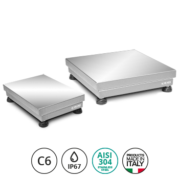 Edelstahl AISI 304. Wägezelle aus Aluminium. Schutzart IP67.